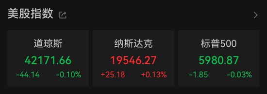 当地时间6月18日,Wind数据显示,截至收盘,道指跌0.10%,报42171.66点;纳指涨0.13%,报19546.27点;标普500指数跌0.03%,报5980.86点。