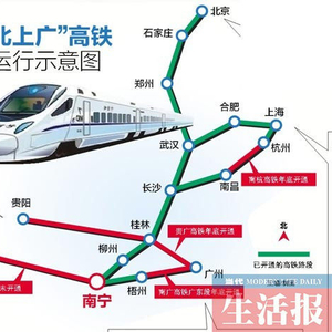 现在,以上高铁还没有完全开通,市民要想从南宁乘坐高铁到上海,可以选择先乘坐动车到武汉,再从武汉转乘高铁到上海,也能比原来乘坐普通列车到上海节省不少时间。