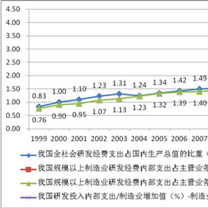 一是规模以上制造业研发经费内部支出占主营业务收入比重。为与国际具有可比性,该指标的预测,使用OECD的统计数据。未来十年,以OECD统计的1999-2012年我国制造业研发投入强度年均增速5.9%进行测算,2020年和2025年指标将分别达到1.26%和1.68%。