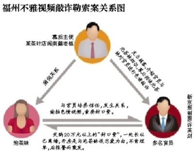福建行政学院一位要求匿名的教授介绍,今年春节之前的福州官场就开始流传一起不雅视频敲诈勒索案的幕后故事。案件起因是福州一家茶叶店的泡茶妹与福州多名官员开房发生性关系,整个过程被房间内隐藏的针孔摄像头拍下。事后,泡茶妹以“艳照”要挟官员支付一笔20万元以上的封口费,否则即威胁称向纪委举报。事件的幕后主谋是一名闽南籍男性商人。