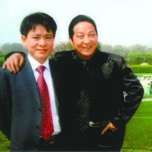 “大师”王林的徒弟邹勇与其在印度首都新德里合影留念。(图片来源:网络)