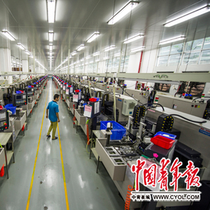 走进杨威工作的车间,信号灯闪烁的机器人在安静地作业,开料、精雕、清洗等一系列工序在机械手中有条不紊地迅速完成。杨威和他的同事们只需要不时确认机器人工作状态是否良好,一个人就能同时管理18台机器人。“刚进厂时,我在车间当设备维修工,后来工厂引进了机器人,我就成了一名前段操作员。起初特别担心自己会在技术升级中被机器人淘汰,但没想到随着效率的提高和产量的增加,企业的规模也越来越大,作为最早一批操控机器人的技术工,我也从一线工人变成了管理者”,杨威说。