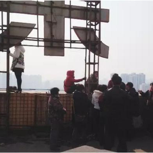拉横幅、喊口号,多种方式无果后,终于演变成2月3日的“集体跳楼”。当天上午10时许,数十人站在楼顶平台的边缘,喊口号要求当地政府派员把郭兰芳带到平台“现场办公”。