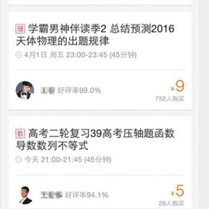 现供职于北京某重点示范初中的王老师教授物理。33岁的他教龄已有10年。他称,自己大约是在2015年9月份开始通过网络直播授课,当时在线核验了他的身份证和教学资格证后,在线签署了一份协议,平时他会利用休息时间,每月开4次左右的专题课程,“学生可以用手机和电脑听,我们只能在电脑客户端上讲,上课前需要备课,但是没有硬性规定上课时间。”