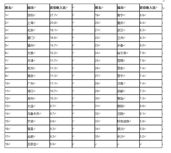 35个大中城市房价收入比排名:深圳居首压力大 长沙垫底买房相对稍容易