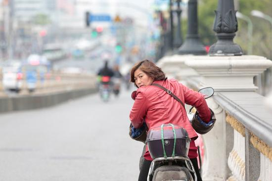 2016年4月9日,钟点工赵春琴骑车穿行在前往下一家做工的路上。