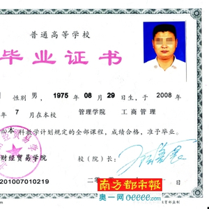 一张盖有“北京财经贸易学院”红章的工商管理的本科毕业证,上面有校长签字,还有清晰的证书编号,但这张证书却是假的。