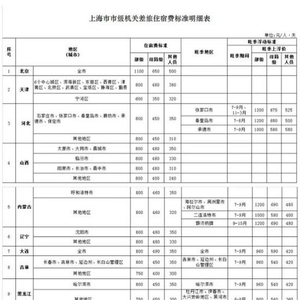 “上海观察”微信公号6月1日消息,解放日报·上海观察记者从上海市财政局网站了解到,上海市直机关工作人员赴省外各地差旅住宿费标准明细表已出炉。