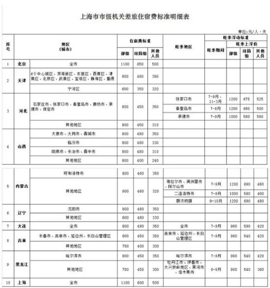 上海机关差旅住宿费标准出炉:赴京出差住宿标准最高