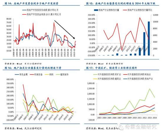 2016下半年,地产刺激政策不可持续,后续影响惯性有限,5月起销售数据大幅下跌,考虑到房地产投资滞后销售数据半年的时间,预计房地产开发投资在3季度末将进入下行通道,房地产及相关行业的债券发行量将下滑。前瞻来看,早期拉动中国经济增长的出口、投资、消费动能不足,人口红利逐渐消退,城市化进程趋缓,未来中国经济增速将在较长时间内在经济“L”型的低位震荡,以房地产开发投资带动的债券融资需求将逐步萎缩。