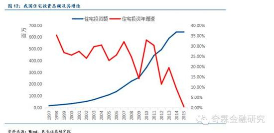 销售预期下滑,房地产开发投资趋缓。房地产市场经历了近十年的高歌猛进后,住宅投资总额近两年稳定在6.4亿左右,且2015年住宅开发投资总额仅增长了0.38%,刷新历史新低。随着今年5月房地产销售数据放缓,房地产开发投资的悲观情绪进一步上浮。而投资的趋缓带来的直接影响是房地产开发的减少,进而使得新房的供应减少,间接推动存量房时代。