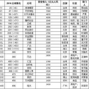 24家华人控股民营企业跻身世界500强,鸿海精密、平安、太平洋建设三家华人民企挺进百强