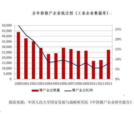 报告称中国僵尸企业比例约为7.5%,政企合谋是首因