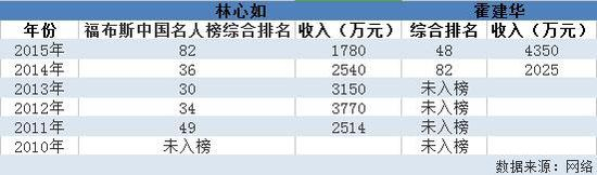 林心如1994年就踏入了演艺圈,比2002年出道的霍建华资历老,挣钱更早。但霍建华近年来凭借《仙剑奇侠传三》、《花千骨》等电视剧,片酬也飙升。在2015年福布斯中国名人榜上,林心如综合排名第82位,收入为1780万元。而霍建华以4350万元的收入居第48位。