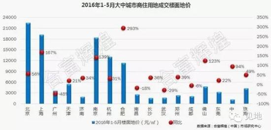 今年上半年,全国大中城市土地市场火爆,北京、上海、南京、合肥等一线和二线热点城市“地王”频出,平均楼面地价大幅上涨,同比去年普遍上涨超过五成。