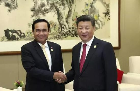 习近平指出,中泰一家亲。中方高度重视发展中泰友好关系,愿同泰方一道,推动两国全面战略合作不断迈上新台阶。中泰双方要加强战略沟通,加强发展战略对接,大力推进两国各领域互利合作,扩大人员往来,加强在多边框架内的协调和配合。