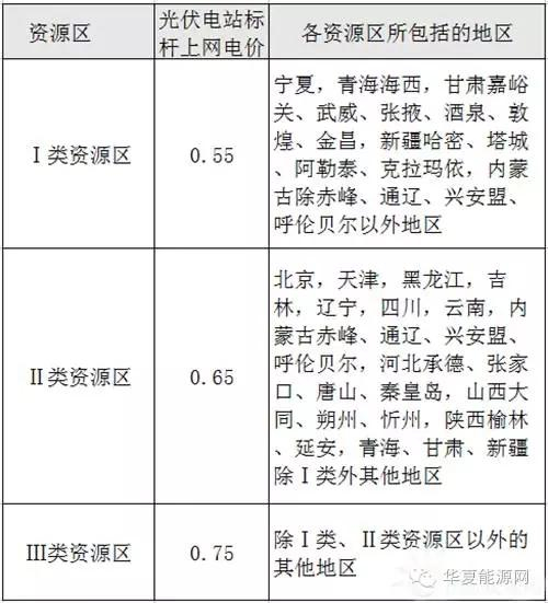 全国光伏发电上网标杆电价表 单位:元/千瓦时(含税)