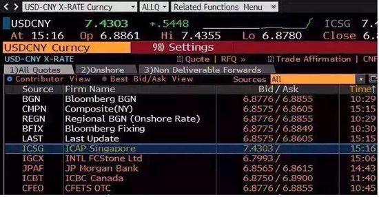 美东时间周一下午,谷歌美元兑人民币报价惊现7.43,外汇网站XE报价也给出了美元兑人民币日高7.43279的报价。华尔街一些资深人士对华尔街见闻表示,7.4应该是数据出错了。XE网站也对见闻表示,正进一步核实该汇率。其它数据网站仍显示在岸人民币位于6.88一线,离岸6.86一线。但也有专家表示,今天确实有一家券商调高人民币汇率到7.46,如英国毅联汇业集团(ICAP),这也可能是XE网站报价意外跳升的原因之一。