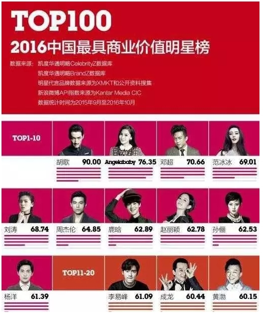 娱乐圈的“粉丝奇迹”也是一笔惊人的商业价值。当下被粉丝们称为“小鲜肉”的“全能”艺人鹿晗,以其身价2.7亿元排在90后富豪榜第五位。此前,第一财经周刊发布的一项数据评选出“2016年最具商业价值明星榜”,鹿晗赫然位列总榜第七、90后第一名。