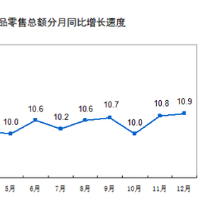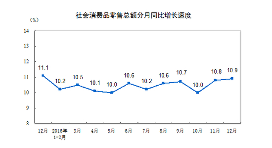 2016年12月份社会消费品零售总额增长10.9%
