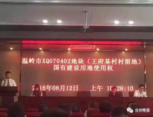 去年8月12日,王府基村在温岭银泰城旁边的一块村留地拍卖,地段极好。