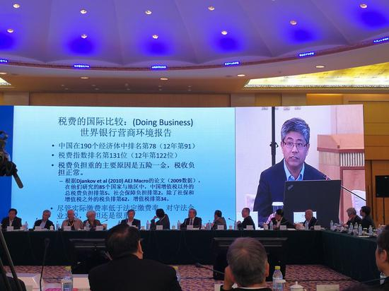 白重恩在会上分享了一份世界银行发布的营商环境报告。这个报告分十个维度对各个国家的营商环境做评估。报告显示,在税负维度上,中国在190个经济体中排第131位,而在2012年这个排名是122位。白重恩表示,这说明我们从国际比较的角度,我们税负的负担对企业来说确实是比较重的。