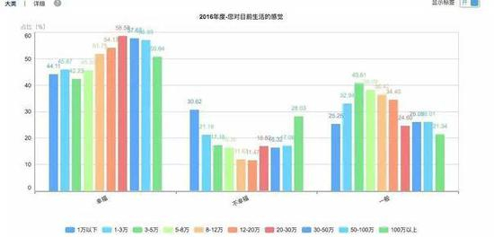 大调查发现,虽然“收入多少”与“幸福感”基本呈“正相关”,但我们发现:年收入在30万形成一个幸福的拐点。超过三十万的家庭随着收入越高,幸福感逐渐下降。