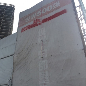附近的工地围栏上,还可以看到“世界500强”字样的宣传招贴。