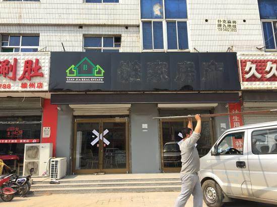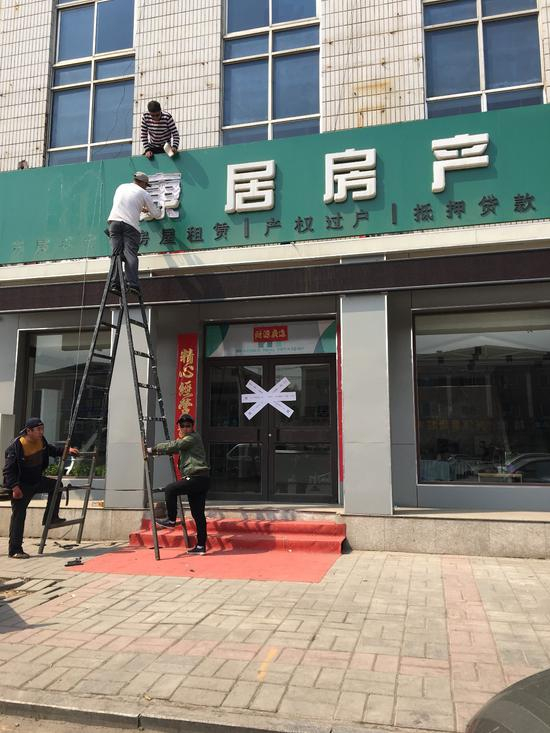 除了各个房屋中介和楼盘销售中心被贴封条、禁止售楼外,北京时间“财镜”也注意到,在雄县主干道路——雄州路上,路边的房屋中介所也在清理招牌上的字迹。