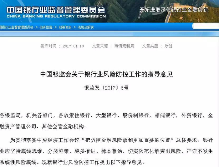 银监会警示银行业风险防控十大重点领域
