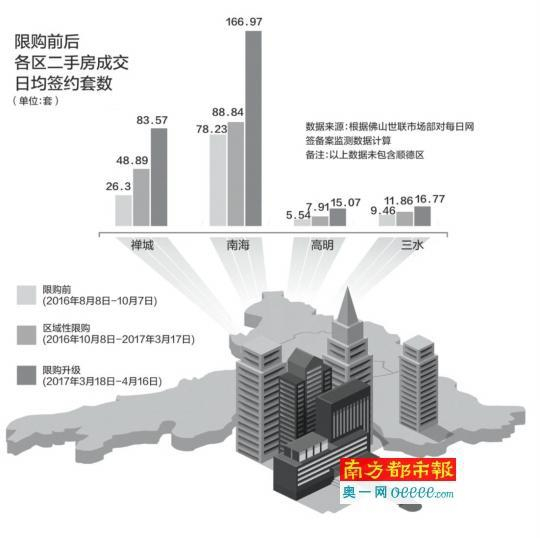 数据显示,今年3月18日到4月16日,也就是限购升级后的一个月时间,佛山禅城、南海、高明和三水四区,二手房成交套数达到8471套,日均成交量超过282套,明显高于此前日均157套,以及去年10月限购重启之前的日均不到120套的交易量。