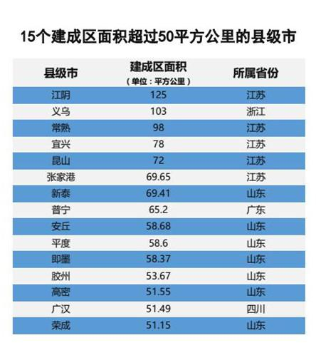 哪些县级市规模最大:江阴义乌领衔 15城超50平方公里