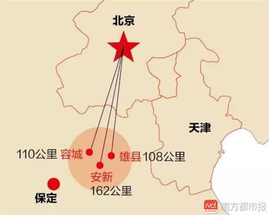 据徐匡迪介绍,北京“往南顺下去”也经过霸州,但没有选址霸州,因为这里有地裂,地质状况不适合建城。后来在附近找了五个选址,最终确定了雄县、容城和安新联合起来的这个区域。
