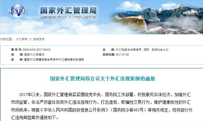 国家外汇管理局新近又通报了25起外汇违规案例,这是今年以来外汇局第三次集中通报外汇违规案例。从通报的处罚结果看,包括企业、个人甚至是银行,都因从事各类外汇违法违规行为而被处罚,有的处以上千万的天价罚金,有的甚至被司法机关判以有期徒刑。