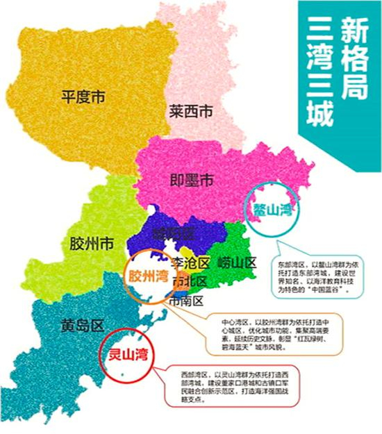 3月,在青岛市第十二次党代会报告中,青岛首次提出了“三湾三城”的全新构想,即构筑“中心湾区、西部湾区、东部湾区”海湾型城市新格局,三湾是指由胶州湾、灵山湾、鳌山湾构成的湾区都会组团。