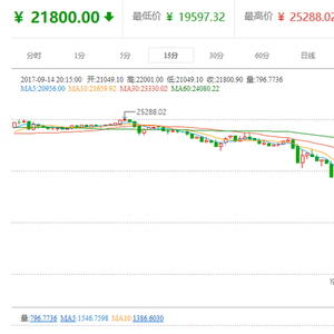 截至记者发稿,火币网比特币价格已经跌破20000元,最低跌至19597.32元。
