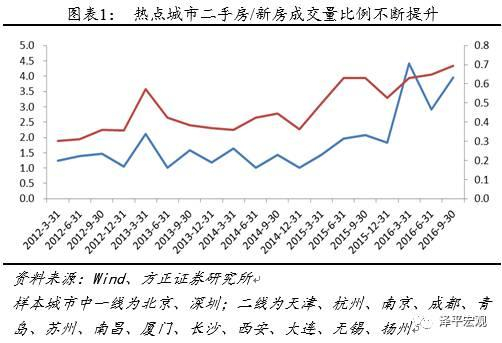 从15个样本热点城市的成交数据中,可以看出二手房成交量/新房成交量数值不断提升。北京和深圳从2009年开始,二手房成交量就已超过新房成交量,步入存量房时代;2012年到2016年9月,二手房/新房成交量比值由2提升至4。重点二三线城市这一比值从2015年初开始迅速提升,目前已到0.7的水平;部分城市的核心区域已步入存量房时代。