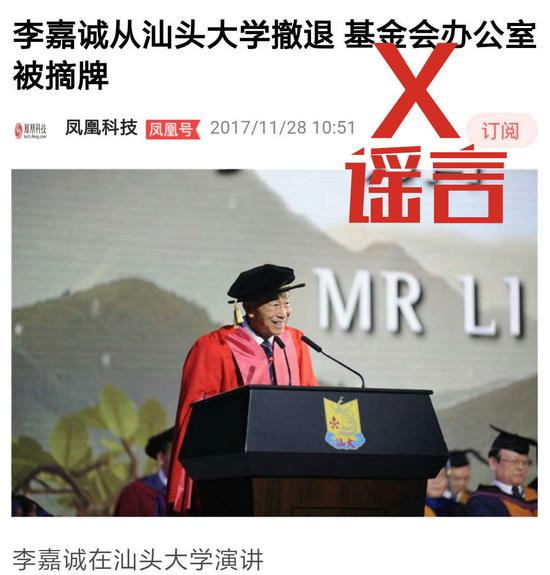 李嘉诚基金会被汕大摘牌?副校长:最假的假新闻!