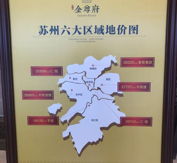就如泰禾金尊府销售中心内放置着的广告牌一样,上面印着的苏州各区诞生的高价地似乎像横幅一般展示着“面包正在特卖”。