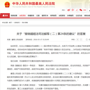 编者按:婚姻法司法解释发布以来,法律界对此一直都有争议。最高法曾在2016年3月17日在其官方网站发布《关于“撤销婚姻法司法解释(二)第24条的建议”的答复》,对于社会上的讨论做出回复。现予以回顾。