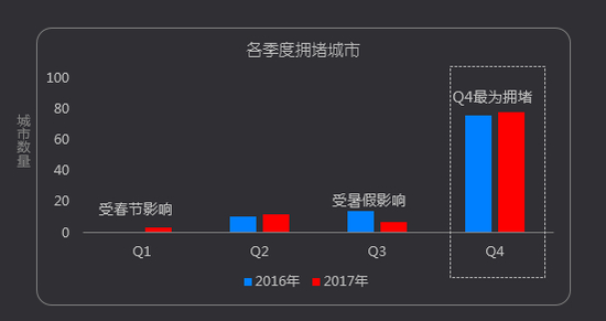 近8成城市“第四季度”为“最堵季”晚高峰相比第二季度高出8.7%