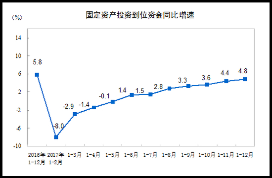 2017年全国固定资产投资(不含农户)增长7.2%