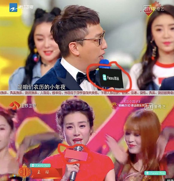 不过有意思的是,同样是遮挡,江苏卫视的后期技术要明显好于浙江卫视,通过这两张对比图可以十分清晰地表现出来,前一张浙江卫视华少的话筒标牌变成黑色,而且面积还扩大了很多,一眼看上去有点假;而东方卫视的遮罩是红色,相对来说比较贴合春节喜庆的氛围。