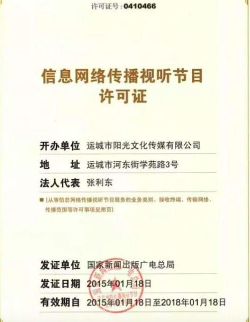 从理论上讲,视听许可证是三年一审,今日头条到了2018年1月要续牌。阻碍或许在于,阳光文化传媒的控股人身份并非国资,而按照视听许可证的颁发要求,2008年后必须是国资控股。