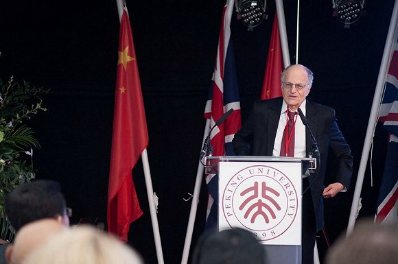 资料图:萨金特在北京大学120周年校庆海外典礼上发表主题演讲。图片来源:汇丰商学院