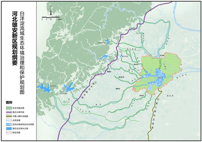 构建水源保障体系。依托南水北调、引黄入冀补淀等区域调水工程,合理利用上游水、当地水、再生水,完善新区供水网络,强化水源互联互通,形成多源互补的新区供水格局。