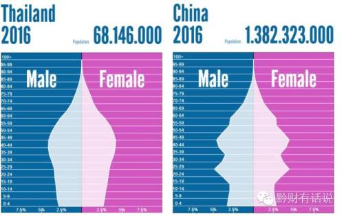 2016年中泰人口年龄结构对比: