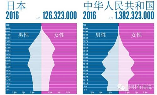 2016年中国和1995年日本的年龄结构对比图
