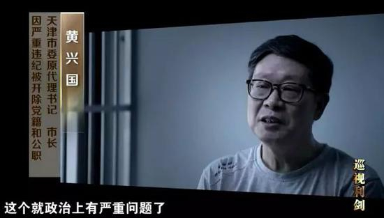 黄兴国在反腐专题片《巡视利剑》中表示:轻信这些人,还跟他保持一种交往,政治上太不清醒了。而且后来,我知道他的这种骗子的可能性的时候,那我又没有向组织报告,这个就政治上有严重问题了。