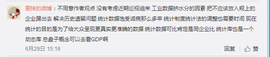 网友雯妹的微博留言说,把不应该放入规上的企业踢出去,解决历史遗留问题。现在统计的目的是为了给大众呈现更真实更准确的数据。统计数据可比肯定是同企业比,统计库也是一个动态库,总盘子概念可以去看GDP啊。